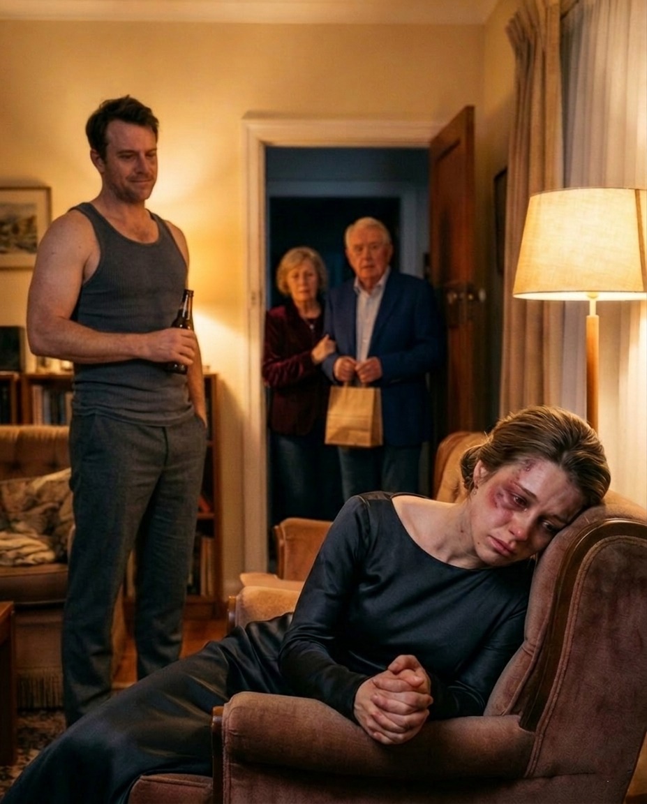 Mi madre, Linda, entró con dos bolsas de papel perfumadas con vapor y salsa, con el rostro suavizado por el cariño habitual. Mi padre, Harold, la siguió con los hombros relajados, sin darse cuenta de que esta visita ordinaria haría añicos ilusiones que ninguno de nosotros comprendía del todo. Evan estaba recostado cerca del televisor, con la camisa por fuera y una cerveza en la mano, su indiferencia casual irradiaba la seguridad de quien está convencido de que el silencio lo protegerá una vez más.