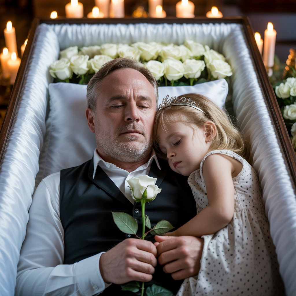 En el velorio de mi padre, la habitación estaba impregnada del olor a lirios y de sollozos apagados. Mi hermana Lily , de ocho años, permanecía de pie junto al ataúd sin moverse. No lloraba, apenas parpadeaba; Solo miraba su rostro inmóvil, como si esperara que respirara de nuevo.