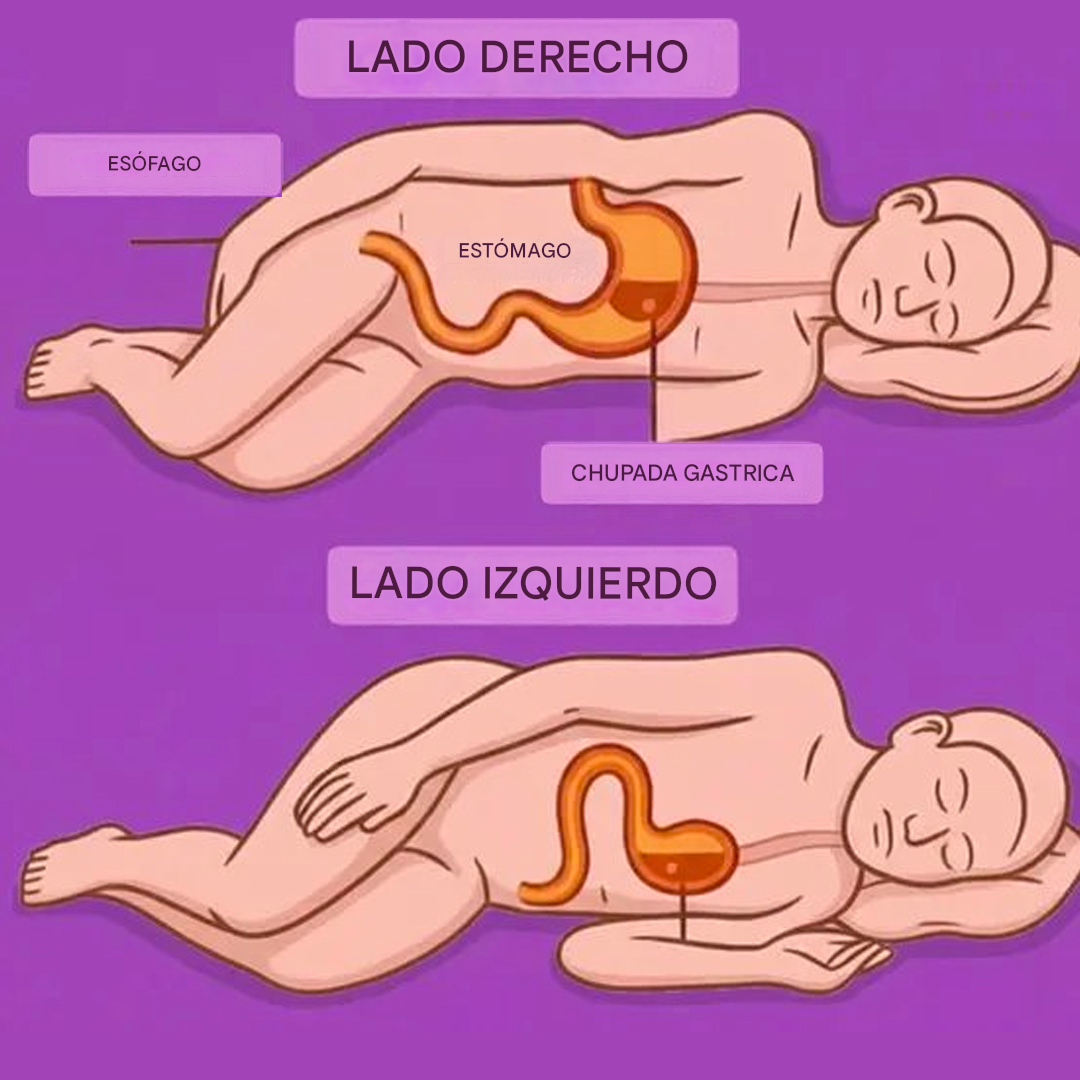 Al acostarse sobre el lado derecho, se activa la disposición natural de los órganos. El estómago y el esófago no tienen la misma posición que al dormir sobre el lado izquierdo.