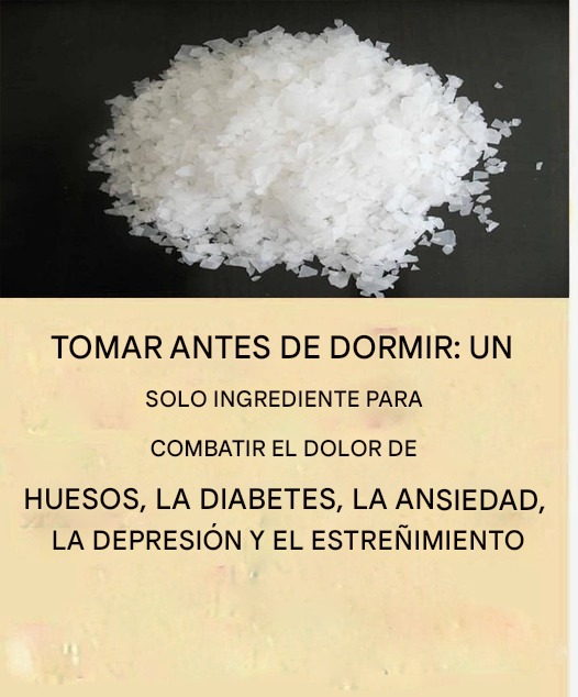 La sal contiene magnesio y potasio, dos minerales que reducen la inflamación en músculos y articulaciones. Su consumo en pequeñas cantidades antes de dormir puede disminuir la rigidez matutina y mejorar la movilidad, sobre todo en personas con artritis o desgaste óseo. - Apoya el control de la diabetes:
